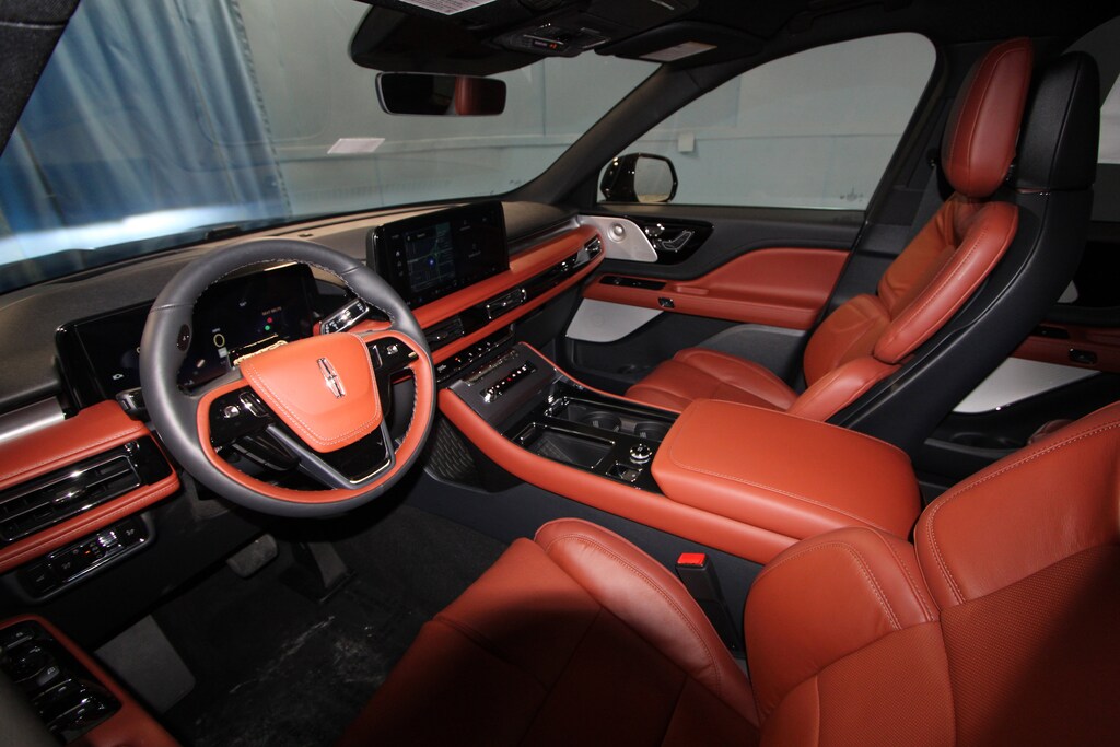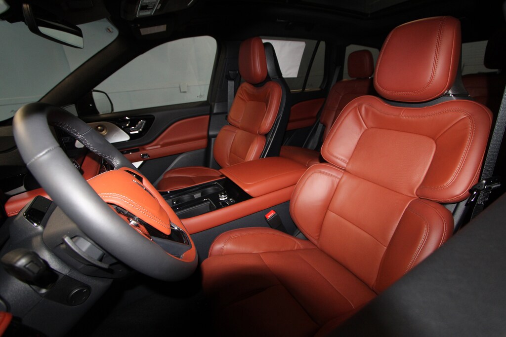 14 Speakers, 30-Way Perfect Position Seats w/Active Motion, 3rd row seats: split-bench, 4-Wheel Disc Brakes, 40/Mini Console/40 Dual Captain's Chairs, ABS brakes, Adaptive Dynamic Bending Lighting, Adaptive Pixel LED Headlamps, Adaptive suspension, Advanced Heads-Up Display, Air Conditioning, Air Glide Suspension w/Dynamic Lower Entry, All-Weather 1st & 2nd Row Floor Liners (16A), Alloy wheels, AM/FM radio: SiriusXM, Apple CarPlay/Android Auto, Audio memory, Auto Air Refresh, Auto High-beam Headlights, Auto-dimming door mirrors, Auto-dimming Rear-View mirror, Automatic temperature control, Brake assist, Bumpers: body-color, Compass, Delay-off headlights, Driver door bin, Driver vanity mirror, Dual front impact airbags, Dual front side impact airbags, Dynamic Handling Package, Electronic Stability Control, Emergency communication system: 911 Assist, Equipment Group 201A, Four wheel independent suspension, Front anti-roll bar, Front Bucket Seats, Front Center Armrest, Front dual zone A/C, Front reading lights, Fully automatic headlights, Garage door transmitter, Genuine wood console insert, Genuine wood dashboard insert, Heads-Up Display, Heated & Ventilated Rear Seats, Heated door mirrors, Heated front seats, Heated steering wheel, HVAC memory, Illuminated entry, Illuminated Lincoln Star in Grille, Illumination Package, Knee airbag, Leather steering wheel, Lincoln BlueCruise Equipped (4-Years Included), Lincoln Digital Experience, Lincoln Dynamic Signature Lighting, Low tire pressure warning, Luxury Package, Memory seat, Navigation system: Connected Navigation (1-year trial), Occupant sensing airbag, Outside temperature display, Overhead airbag, Overhead console, Panic alarm, Passenger door bin, Passenger vanity mirror, Power door mirrors, Power driver seat, Power Liftgate, Power moonroof: Panoramic Vista Roof, Power passenger seat, Power steering, Power windows, Premium Lthr Heated/Ventilated Fnt Captain's Chairs, Radio data system, Radio: Revel Audio System w/14 Speakers, Radio: Revel Ultima 3D Audio System w/28 Speakers, Rain sensing wipers, Rear air conditioning, Rear anti-roll bar, Rear audio controls, Rear dual zone A/C, Rear reading lights, Rear window defroster, Rear window wiper, Remote keyless entry, Security system, SiriusXM, Speed control, Speed Dependent Lighting, Speed-Sensitive Wipers, Split folding rear seat, Spoiler, Steering wheel memory, Steering wheel mounted A/C controls, Steering wheel mounted audio controls, Tachometer, Telescoping steering wheel, Tilt steering wheel, Traction control, Trip computer, Turn signal indicator mirrors, Variably intermittent wipers, Ventilated front seats, Wheels: 21 Bright-Machined Aluminum, Wheels: 22 Bright-Machined Aluminum, Wireless Charging Pad.