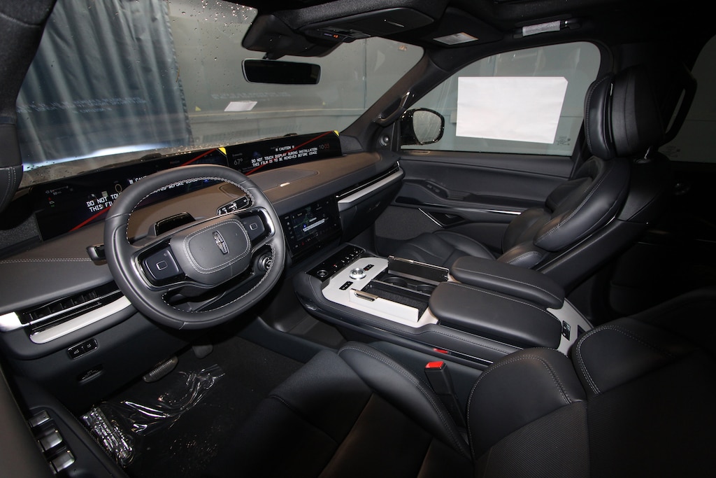 26mm Engine Radiator, 28 Speakers, 3rd row seats: split-bench, 4-Wheel Disc Brakes, ABS brakes, Adaptive suspension, Adjustable pedals, Air Conditioning, All-Weather Flr Liners w/Fr & Rr Carpet Floor Mats, Alloy wheels, AM/FM radio: SiriusXM with 360L, Apple CarPlay/Android Auto, Audio memory, Auto High-beam Headlights, Auto Htd & Ventilated Premium Lthr Captain's Chair, Auto Start-Stop Technology, Auto tilt-away steering wheel, Auto-dimming door mirrors, Auto-dimming Rear-View mirror, Auto-leveling suspension, Automatic temperature control, Black Accent Badge, Black Accent Interior Pack, Black Beltline Molding, Black Painted Roof Rails, Brake assist, Bumpers: body-color, Compass, Delay-off headlights, Driver door bin, Driver vanity mirror, Driver's Seat Mounted Armrest, Dual front impact airbags, Dual front side impact airbags, Electronic Stability Control, Emergency communication system: 911 Assist, Equipment Group 202A Reserve II, Exterior Parking Camera Rear, Four wheel independent suspension, Front anti-roll bar, Front Bucket Seats, Front Bumper Fascia, Front dual zone A/C, Front reading lights, Fully automatic headlights, Garage door transmitter, Heated door mirrors, Heated front seats, Heated rear seats, Heated steering wheel, Heavy-Duty Trailer Tow Package, HVAC memory, Illuminated entry, Jet Appearance Package, Leather steering wheel, Lincoln Connect, Lincoln Lit Star, Lincoln Premium Connectivity, Low tire pressure warning, Memory seat, Navigation system: Connected Navigation (1-year trial), Occupant sensing airbag, Outside temperature display, Overhead airbag, Overhead console, Panic alarm, Passenger door bin, Passenger seat mounted armrest, Passenger vanity mirror, Pedal memory, Power adjustable front head restraints, Power adjustable rear head restraints, Power door mirrors, Power driver seat, Power moonroof, Power passenger seat, Power steering, Power windows, Radio data system, Radio: Revel Ultima 3D AM/FM/HD Audio System, Rain sensing wipers, Rear air conditioning, Rear anti-roll bar, Rear audio controls, Rear reading lights, Rear window defroster, Rear window wiper, Reclining 3rd row seat, Remote keyless entry, Security system, SiriusXM w/360L, Speed control, Speed-sensing steering, Speed-Sensitive Wipers, Split folding rear seat, Spoiler, Steering wheel memory, Steering wheel mounted audio controls, Tachometer, Telescoping steering wheel, Tilt steering wheel, Traction control, Trailer Brake Controller, Trip computer, Turn signal indicator mirrors, Unique Lincoln Grille Pillar Black Surround, Variably intermittent wipers, Ventilated front seats, Wheels: 22 Dark Tarnished Aluminum, Wheels: 22 High-Gloss Ebony Aluminum.