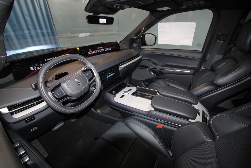 28 Speakers, 3rd row seats: split-bench, 4-Wheel Disc Brakes, ABS brakes, Adaptive suspension, Adjustable pedals, Air Conditioning, All-Weather Flr Liners w/Fr & Rr Carpet Floor Mats, Alloy wheels, AM/FM radio: SiriusXM with 360L, Apple CarPlay/Android Auto, Audio memory, Auto High-beam Headlights, Auto Htd & Ventilated Premium Lthr Captain's Chair, Auto Start-Stop Technology, Auto tilt-away steering wheel, Auto-dimming door mirrors, Auto-dimming Rear-View mirror, Auto-leveling suspension, Automatic temperature control, Black Accent Badge, Black Accent Interior Pack, Black Beltline Molding, Black Painted Roof Rails, Brake assist, Bumpers: body-color, Compass, Delay-off headlights, Driver door bin, Driver vanity mirror, Driver's Seat Mounted Armrest, Dual front impact airbags, Dual front side impact airbags, Electronic Stability Control, Emergency communication system: 911 Assist, Equipment Group 202A Reserve II, Exterior Parking Camera Rear, Four wheel independent suspension, Front anti-roll bar, Front Bucket Seats, Front Bumper Fascia, Front dual zone A/C, Front reading lights, Fully automatic headlights, Garage door transmitter, Heated door mirrors, Heated front seats, Heated rear seats, Heated steering wheel, HVAC memory, Illuminated entry, Jet Appearance Package, Leather steering wheel, Lincoln Connect, Lincoln Lit Star, Lincoln Premium Connectivity, Low tire pressure warning, Memory seat, Navigation system: Connected Navigation (1-year trial), Occupant sensing airbag, Outside temperature display, Overhead airbag, Overhead console, Panic alarm, Passenger door bin, Passenger seat mounted armrest, Passenger vanity mirror, Pedal memory, Power adjustable front head restraints, Power adjustable rear head restraints, Power door mirrors, Power driver seat, Power moonroof, Power passenger seat, Power steering, Power windows, Radio data system, Radio: Revel Ultima 3D AM/FM/HD Audio System, Rain sensing wipers, Rear air conditioning, Rear anti-roll bar, Rear audio controls, Rear reading lights, Rear window defroster, Rear window wiper, Reclining 3rd row seat, Remote keyless entry, Security system, SiriusXM w/360L, Speed control, Speed-sensing steering, Speed-Sensitive Wipers, Split folding rear seat, Spoiler, Steering wheel memory, Steering wheel mounted audio controls, Tachometer, Telescoping steering wheel, Tilt steering wheel, Traction control, Trip computer, Turn signal indicator mirrors, Unique Lincoln Grille Pillar Black Surround, Variably intermittent wipers, Ventilated front seats, Wheels: 22 Dark Tarnished Aluminum, Wheels: 22 High-Gloss Ebony Aluminum.