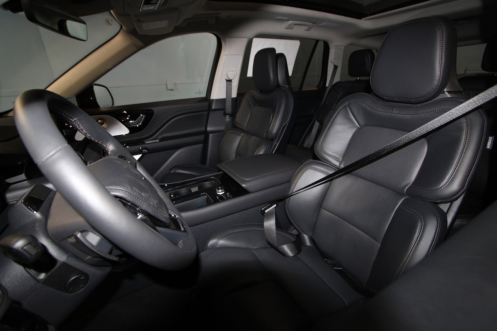 14 Speakers, 30-Way Perfect Position Seats with Active Motion, 3rd row seats: split-bench, 4-Wheel Disc Brakes, 40/Mini Console/40 Dual Captain's Chairs, ABS brakes, Adaptive Dynamic Bending Lighting, Adaptive Pixel LED Headlamps, Adaptive suspension, Advanced Heads-Up Display, Air Conditioning, Air Glide Suspension with Dynamic Lower Entry, All-Weather 1st and 2nd Row Floor Liners, Alloy wheels, AM/FM radio: SiriusXM, Apple CarPlay/Android Auto, Audio memory, Auto Air Refresh, Auto Heated and Ventilated Driver and Passenger Seats, Auto High-beam Headlights, Auto-dimming door mirrors, Auto-dimming Rear-View mirror, Automatic temperature control, Black Exterior Elements, Body-Color Exterior Elements, Brake assist, Bumpers: body-color, Compass, Delay-off headlights, Driver door bin, Driver vanity mirror, Dual front impact airbags, Dual front side impact airbags, Dynamic Handling Package, Electronic Stability Control, Emergency communication system: 911 Assist, Equipment Group 201A Reserve II, Four wheel independent suspension, Front anti-roll bar, Front Bucket Seats, Front Center Armrest, Front dual zone A/C, Front reading lights, Fully automatic headlights, Garage door transmitter, Genuine wood console insert, Genuine wood dashboard insert, Heads-Up Display, Heated and Ventilated Rear Seats, Heated door mirrors, Heated front seats, Heated steering wheel, HVAC memory, Illuminated entry, Illuminated Lincoln Star in Grille, Illumination Package, Jet Appearance Package, Knee airbag, Leather steering wheel, Lincoln App, Lincoln BlueCruise Equipped (4-Years Included), Lincoln Connectivity Package (4-Years), Lincoln Digital Experience, Lincoln Dynamic Signature Lighting, Low tire pressure warning, Luxury Package, Memory seat, Navigation system: Google Maps, Occupant sensing airbag, Outside temperature display, Overhead airbag, Overhead console, Panic alarm, Passenger door bin, Passenger vanity mirror, Power door mirrors, Power driver seat, Power Liftgate, Power moonroof: Panoramic Vista Roof, Power passenger seat, Power steering, Power windows, Premium Leather Front Captain's Chairs, Radio data system, Radio: Revel Audio System with 14 Speakers, Radio: Revel Ultima 3D Audio System with 28 Speakers, Rain sensing wipers, Rear air conditioning, Rear anti-roll bar, Rear audio controls, Rear dual zone A/C, Rear reading lights, Rear window defroster, Rear window wiper, Remote keyless entry, Security system, SiriusXM, Speed control, Speed Dependent Lighting, Speed-Sensitive Wipers, Split folding rear seat, Spoiler, Steering wheel memory, Steering wheel mounted A/C controls, Steering wheel mounted audio controls, Tachometer, Telescoping steering wheel, Tilt steering wheel, Traction control, Trip computer, Turn signal indicator mirrors, Variably intermittent wipers, Ventilated front seats, Wheels: 21 Bright-Machined Aluminum with Dark Alloy Painted Pockets, Wheels: 22 Black Aluminum, Wheels: 22 Bright-Machined Aluminum with Magnetic Painted Pockets, Wireless Charging Pad.