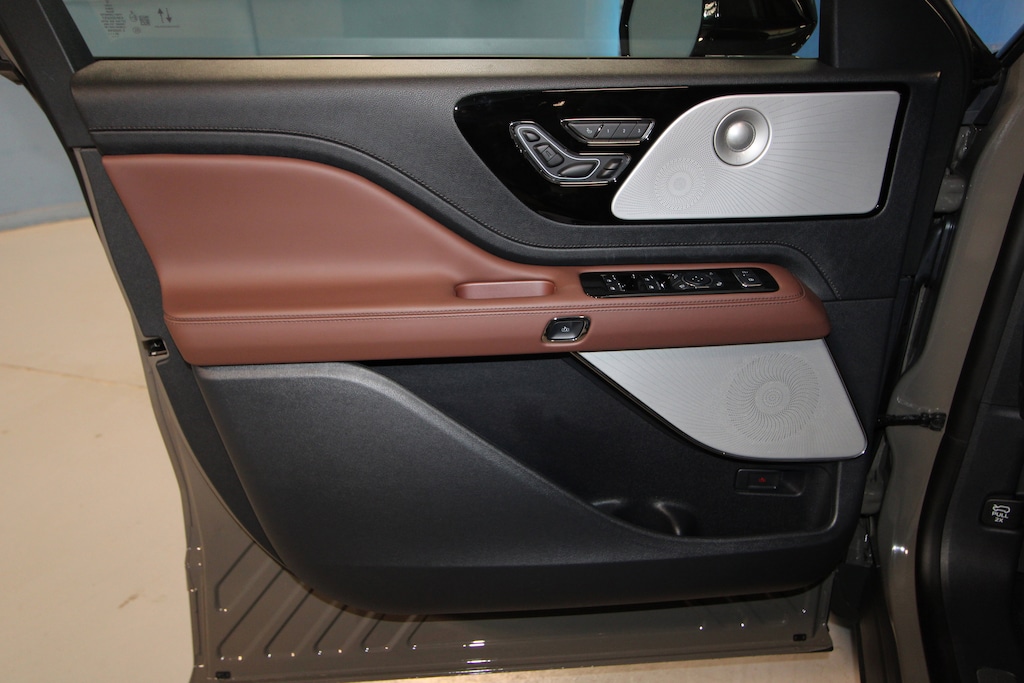 14 Speakers, 30-Way Perfect Position Seats w/Active Motion, 3rd row seats: split-bench, 4-Wheel Disc Brakes, 40/Mini Console/40 Dual Captain's Chairs, ABS brakes, Adaptive Dynamic Bending Lighting, Adaptive Pixel LED Headlamps, Adaptive suspension, Advanced Heads-Up Display, Air Conditioning, Air Glide Suspension w/Dynamic Lower Entry, Alloy wheels, AM/FM radio: SiriusXM, Apple CarPlay/Android Auto, Audio memory, Auto Air Refresh, Auto High-beam Headlights, Auto-dimming door mirrors, Auto-dimming Rear-View mirror, Automatic temperature control, Brake assist, Bumpers: body-color, Compass, Delay-off headlights, Driver door bin, Driver vanity mirror, Dual front impact airbags, Dual front side impact airbags, Dynamic Handling Package, Electronic Stability Control, Emergency communication system: 911 Assist, Equipment Group 201A, Exterior Parking Camera Rear, Four wheel independent suspension, Front anti-roll bar, Front Bucket Seats, Front Center Armrest, Front dual zone A/C, Front reading lights, Fully automatic headlights, Garage door transmitter, Genuine wood console insert, Genuine wood dashboard insert, Heads-Up Display, Heated & Ventilated Rear Seats, Heated door mirrors, Heated front seats, Heated steering wheel, HVAC memory, Illuminated entry, Illuminated Lincoln Star in Grille, Illumination Package, Knee airbag, Leather steering wheel, Lincoln BlueCruise Equipped (4-Years Included), Lincoln Connectivity Package (4-years included), Lincoln Digital Experience, Lincoln Dynamic Signature Lighting, Low tire pressure warning, Luxury Package, Memory seat, Navigation System, Occupant sensing airbag, Outside temperature display, Overhead airbag, Overhead console, Panic alarm, Passenger door bin, Passenger vanity mirror, Power door mirrors, Power driver seat, Power Liftgate, Power moonroof: Panoramic Vista Roof, Power passenger seat, Power steering, Power windows, Premium Lthr Heated/Ventilated Fnt Captain's Chairs, Radio data system, Radio: Revel Audio System w/14 Speakers, Radio: Revel Ultima 3D Audio System w/28 Speakers, Rain sensing wipers, Rear air conditioning, Rear anti-roll bar, Rear audio controls, Rear dual zone A/C, Rear reading lights, Rear window defroster, Rear window wiper, Remote keyless entry, Security system, SiriusXM, Speed control, Speed Dependent Lighting, Speed-Sensitive Wipers, Split folding rear seat, Spoiler, Steering wheel memory, Steering wheel mounted A/C controls, Steering wheel mounted audio controls, Tachometer, Telescoping steering wheel, Tilt steering wheel, Traction control, Trip computer, Turn signal indicator mirrors, Variably intermittent wipers, Ventilated front seats, Wheels: 21 Bright-Machined Aluminum, Wheels: 22 Bright-Machined Aluminum, Wireless Charging Pad.