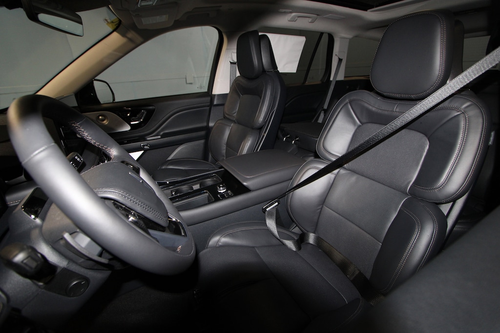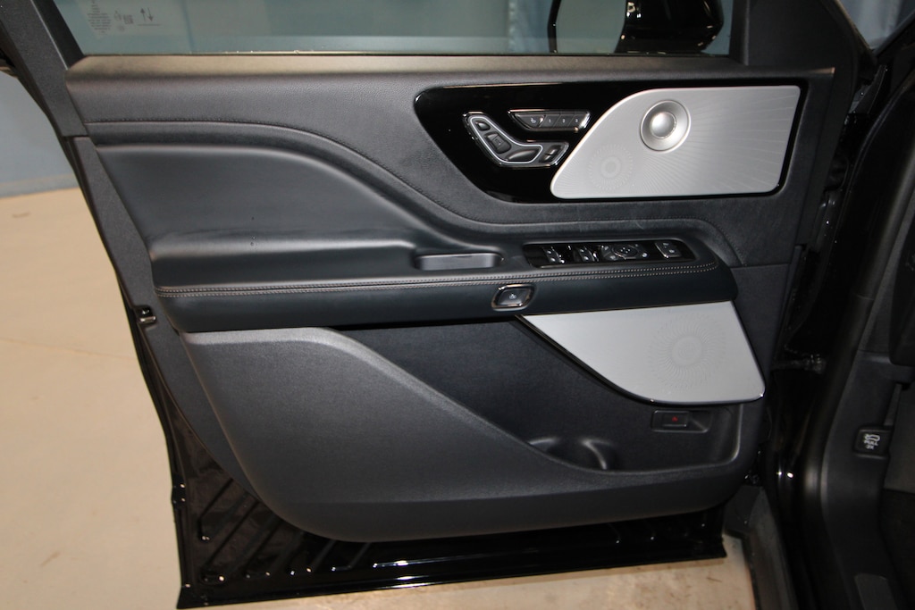 14 Speakers, 30-Way Perfect Position Seats with Active Motion, 3rd row seats: split-bench, 4-Wheel Disc Brakes, 40/Mini Console/40 Dual Captain's Chairs, ABS brakes, Adaptive Dynamic Bending Lighting, Adaptive Pixel LED Headlamps, Adaptive suspension, Advanced Heads-Up Display, Air Conditioning, Air Glide Suspension with Dynamic Lower Entry, Alloy wheels, AM/FM radio: SiriusXM, Apple CarPlay/Android Auto, Audio memory, Auto Air Refresh, Auto Heated and Ventilated Driver and Passenger Seats, Auto High-beam Headlights, Auto-dimming door mirrors, Auto-dimming Rear-View mirror, Automatic temperature control, Brake assist, Bumpers: body-color, Compass, Delay-off headlights, Driver door bin, Driver vanity mirror, Dual front impact airbags, Dual front side impact airbags, Dynamic Handling Package, Electronic Stability Control, Emergency communication system: 911 Assist, Equipment Group 201A Reserve II, Four wheel independent suspension, Front anti-roll bar, Front Bucket Seats, Front Center Armrest, Front dual zone A/C, Front reading lights, Full Rear Console, Fully automatic headlights, Garage door transmitter, Genuine wood console insert, Genuine wood dashboard insert, Heads-Up Display, Heated and Ventilated Rear Seats, Heated door mirrors, Heated front seats, Heated steering wheel, HVAC memory, Illuminated entry, Illuminated Lincoln Star in Grille, Illumination Package, Knee airbag, Leather steering wheel, Lincoln App, Lincoln BlueCruise Equipped (4-Years Included), Lincoln Connectivity Package (4-Years), Lincoln Digital Experience, Lincoln Dynamic Signature Lighting, Low tire pressure warning, Luxury Package, Memory seat, Navigation system: Google Maps, Occupant sensing airbag, Outside temperature display, Overhead airbag, Overhead console, Panic alarm, Passenger door bin, Passenger vanity mirror, Power door mirrors, Power driver seat, Power Liftgate, Power moonroof: Panoramic Vista Roof, Power passenger seat, Power steering, Power windows, Premium Leather Front Captain's Chairs, Radio data system, Radio: Revel Audio System with 14 Speakers, Radio: Revel Ultima 3D Audio System with 28 Speakers, Rain sensing wipers, Rear air conditioning, Rear anti-roll bar, Rear audio controls, Rear dual zone A/C, Rear reading lights, Rear window defroster, Rear window wiper, Remote keyless entry, Security system, SiriusXM, Speed control, Speed Dependent Lighting, Speed-Sensitive Wipers, Split folding rear seat, Spoiler, Steering wheel memory, Steering wheel mounted A/C controls, Steering wheel mounted audio controls, Tachometer, Telescoping steering wheel, Tilt steering wheel, Traction control, Trip computer, Turn signal indicator mirrors, Variably intermittent wipers, Ventilated front seats, Wheels: 21 Bright-Machined Aluminum with Dark Alloy Painted Pockets, Wheels: 22 Bright-Machined Aluminum with Magnetic Painted Pockets, Wireless Charging Pad.