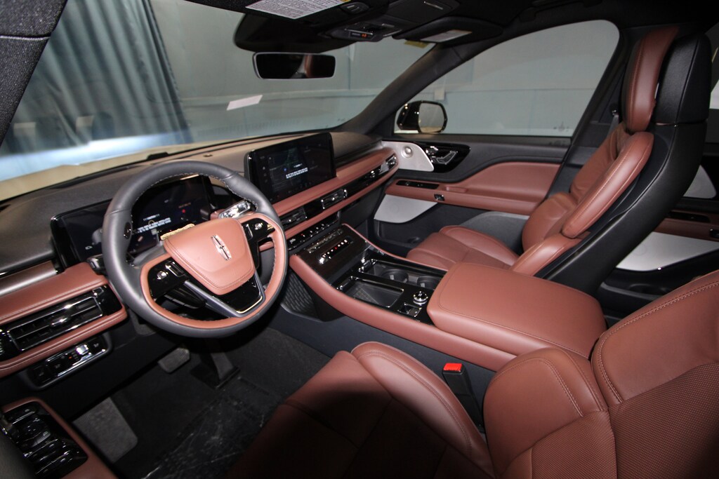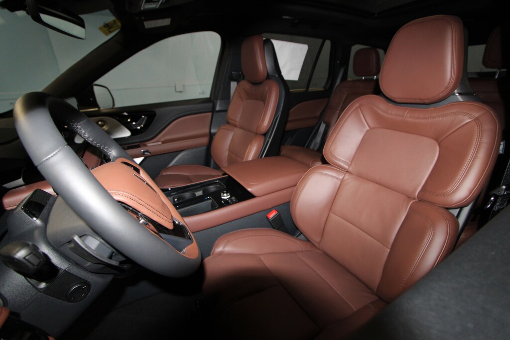 14 Speakers, 30-Way Perfect Position Seats w/Active Motion, 3rd row seats: split-bench, 4-Wheel Disc Brakes, 40/Mini Console/40 Dual Captain's Chairs, ABS brakes, Adaptive Dynamic Bending Lighting, Adaptive Pixel LED Headlamps, Adaptive suspension, Advanced Heads-Up Display, Air Conditioning, All-Weather 1st & 2nd Row Floor Liners (16A), Alloy wheels, AM/FM radio: SiriusXM, Apple CarPlay/Android Auto, Audio memory, Auto Air Refresh, Auto High-beam Headlights, Auto-dimming door mirrors, Auto-dimming Rear-View mirror, Automatic temperature control, Brake assist, Bumpers: body-color, Compass, Delay-off headlights, Driver door bin, Driver vanity mirror, Dual front impact airbags, Dual front side impact airbags, Electronic Stability Control, Emergency communication system: 911 Assist, Equipment Group 201A, Exterior Parking Camera Rear, Four wheel independent suspension, Front anti-roll bar, Front Bucket Seats, Front Center Armrest, Front dual zone A/C, Front reading lights, Fully automatic headlights, Garage door transmitter, Genuine wood console insert, Genuine wood dashboard insert, Heads-Up Display, Heated & Ventilated Rear Seats, Heated door mirrors, Heated front seats, Heated steering wheel, HVAC memory, Illuminated entry, Illuminated Lincoln Star in Grille, Illumination Package, Knee airbag, Leather steering wheel, Lincoln BlueCruise Equipped (4-Years Included), Lincoln Connectivity Package (4-years included), Lincoln Digital Experience, Lincoln Dynamic Signature Lighting, Low tire pressure warning, Luxury Package, Memory seat, Navigation System, Occupant sensing airbag, Outside temperature display, Overhead airbag, Overhead console, Panic alarm, Passenger door bin, Passenger vanity mirror, Power door mirrors, Power driver seat, Power Liftgate, Power moonroof: Panoramic Vista Roof, Power passenger seat, Power steering, Power windows, Premium Lthr Heated/Ventilated Fnt Captain's Chairs, Radio data system, Radio: Revel Audio System w/14 Speakers, Radio: Revel Ultima 3D Audio System w/28 Speakers, Rain sensing wipers, Rear air conditioning, Rear anti-roll bar, Rear audio controls, Rear dual zone A/C, Rear reading lights, Rear window defroster, Rear window wiper, Remote keyless entry, Security system, SiriusXM, Speed control, Speed Dependent Lighting, Speed-Sensitive Wipers, Split folding rear seat, Spoiler, Steering wheel memory, Steering wheel mounted A/C controls, Steering wheel mounted audio controls, Tachometer, Telescoping steering wheel, Tilt steering wheel, Traction control, Trip computer, Turn signal indicator mirrors, Variably intermittent wipers, Ventilated front seats, Wheels: 21 Bright-Machined Aluminum, Wheels: 22 Bright-Machined Aluminum, Wireless Charging Pad.