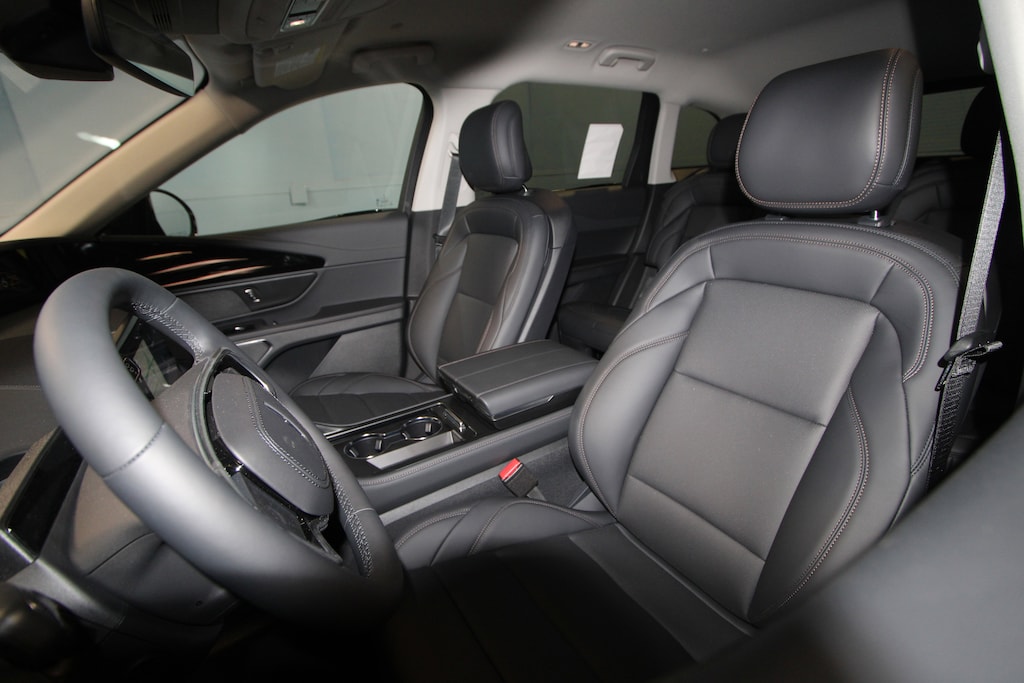 10 Speakers, 19 Bright Machined Aluminum Wheels, 4-Wheel Disc Brakes, ABS brakes, Air Conditioning, Alloy wheels, AM/FM radio: SiriusXM with 360L, Apple CarPlay/Android Auto, Auto High-beam Headlights, Auto tilt-away steering wheel, Auto-dimming Rear-View mirror, Automatic temperature control, BlueCruise Equipped (4-Years Included), Brake assist, Bumpers: body-color, Compass, Delay-off headlights, Driver door bin, Driver vanity mirror, Dual front impact airbags, Dual front side impact airbags, Electronic Stability Control, Emergency communication system: 911 Assist, Equipment Group 101A, Exterior Parking Camera Rear, Four wheel independent suspension, Front anti-roll bar, Front Bucket Seats, Front Center Armrest w/Storage, Front dual zone A/C, Front reading lights, Fully automatic headlights, Garage door transmitter, Heated door mirrors, Heated front seats, Heated steering wheel, Illuminated entry, Knee airbag, Leather steering wheel, Lincoln Connectivity Package, Lincoln Digital Experience, Lincoln Soft Touch Heated Front Captain's Chairs, Low tire pressure warning, Memory seat, Navigation System, Occupant sensing airbag, Outside temperature display, Overhead airbag, Overhead console, Panic alarm, Passenger door bin, Passenger vanity mirror, Power door mirrors, Power driver seat, Power Liftgate, Power passenger seat, Power steering, Power windows, Radio data system, Radio: AM/FM Premium Audio, Rain sensing wipers, Rear anti-roll bar, Rear reading lights, Rear seat center armrest, Rear window defroster, Rear window wiper, Remote keyless entry, Security system, SiriusXM with 360L, Speed control, Speed-sensing steering, Speed-Sensitive Wipers, Split folding rear seat, Spoiler, Steering wheel memory, Steering wheel mounted audio controls, Tachometer, Telescoping steering wheel, Tilt steering wheel, Traction control, Trip computer, Turn signal indicator mirrors, Variably intermittent wipers.
