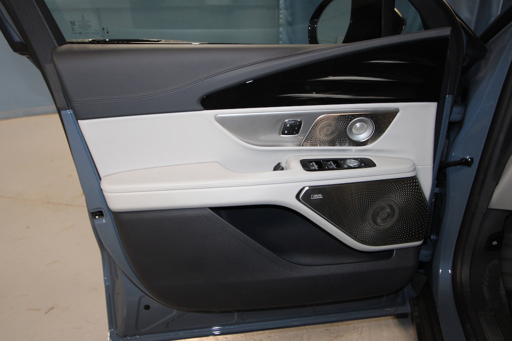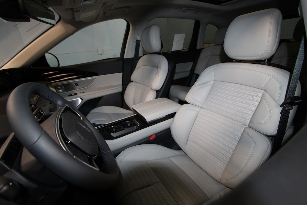 10 Speakers, 110V Power Converter, 4-Wheel Disc Brakes, ABS brakes, Adaptive suspension, Air Conditioning, Alloy wheels, AM/FM radio: SiriusXM with 360L, Apple CarPlay/Android Auto, Auto Air Refresh, Auto High-beam Headlights, Auto tilt-away steering wheel, Auto-dimming Rear-View mirror, Automatic temperature control, BlueCruise Equipped (4-Years Included), Brake assist, Bumpers: body-color, Compass, Delay-off headlights, Digital Scent, Driver door bin, Driver vanity mirror, Dual front impact airbags, Dual front side impact airbags, Electronic Stability Control, Emergency communication system: 911 Assist, Equipment Group 203A Reserve III, Exterior Parking Camera Rear, Four wheel independent suspension, Front anti-roll bar, Front Bucket Seats, Front Center Armrest w/Storage, Front dual zone A/C, Front reading lights, Fully automatic headlights, Garage door transmitter, Hands-Free Power Liftgate, Heated door mirrors, Heated front seats, Heated steering wheel, Illuminated entry, Knee airbag, Leather steering wheel, Lincoln Connectivity Package, Lincoln Digital Experience, Low tire pressure warning, Memory seat, Navigation System, Occupant sensing airbag, Outside temperature display, Overhead airbag, Overhead console, Panic alarm, Panoramic Vista Roof with Powershade, Passenger door bin, Passenger vanity mirror, Power door mirrors, Power driver seat, Power Liftgate, Power passenger seat, Power steering, Power windows, Premium Leather Trimmed Captain's Chairs, Premium Leather-Trimmed Heated/Ventilated Captain's Chairs, Radio data system, Radio: AM/FM Revel Audio System, Radio: AM/FM Revel Ultima 3D Audio System, Rain sensing wipers, Rear anti-roll bar, Rear Heated Seats with Switch Control, Rear reading lights, Rear seat center armrest, Rear window defroster, Rear window wiper, Remote keyless entry, Security system, SiriusXM with 360L, Speed control, Speed-sensing steering, Speed-Sensitive Wipers, Split folding rear seat, Spoiler, Steering wheel memory, Steering wheel mounted audio controls, Tachometer, Telescoping steering wheel, Tilt steering wheel, Traction control, Trip computer, Turn signal indicator mirrors, Variably intermittent wipers, Ventilated front seats.