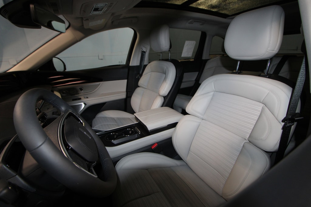 2.0L GTDI FHEV, 10 Speakers, 110V Power Converter, 4-Wheel Disc Brakes, ABS brakes, Adaptive suspension, Air Conditioning, Alloy wheels, AM/FM radio: SiriusXM with 360L, Apple CarPlay/Android Auto, Auto Air Refresh, Auto High-beam Headlights, Auto tilt-away steering wheel, Auto-dimming Rear-View mirror, Automatic temperature control, BlueCruise Equipped (4-Years Included), Brake assist, Bumpers: body-color, Compass, Delay-off headlights, Digital Scent, Driver door bin, Driver vanity mirror, Dual front impact airbags, Dual front side impact airbags, Electronic Stability Control, Emergency communication system: 911 Assist, Equipment Group 203A Reserve III, Exterior Parking Camera Rear, Four wheel independent suspension, Front anti-roll bar, Front Bucket Seats, Front Center Armrest w/Storage, Front dual zone A/C, Front reading lights, Fully automatic headlights, Garage door transmitter, Hands-Free Power Liftgate, Heated door mirrors, Heated front seats, Heated steering wheel, Illuminated entry, Knee airbag, Leather steering wheel, Lincoln Connectivity Package, Lincoln Digital Experience, Low tire pressure warning, Memory seat, Navigation System, Occupant sensing airbag, Outside temperature display, Overhead airbag, Overhead console, Panic alarm, Panoramic Vista Roof with Powershade, Passenger door bin, Passenger vanity mirror, Power door mirrors, Power driver seat, Power Liftgate, Power passenger seat, Power steering, Power windows, Premium Leather Trimmed Captain's Chairs, Premium Leather-Trimmed Heated/Ventilated Captain's Chairs, Radio data system, Radio: AM/FM Revel Audio System, Radio: AM/FM Revel Ultima 3D Audio System, Rain sensing wipers, Rear anti-roll bar, Rear Heated Seats with Switch Control, Rear reading lights, Rear seat center armrest, Rear window defroster, Rear window wiper, Remote keyless entry, Security system, SiriusXM with 360L, Speed control, Speed-sensing steering, Speed-Sensitive Wipers, Split folding rear seat, Spoiler, Steering wheel memory, Steering wheel mounted audio controls, Tachometer, Telescoping steering wheel, Tilt steering wheel, Traction control, Trip computer, Turn signal indicator mirrors, Variably intermittent wipers, Ventilated front seats, 2.0L GTDI FHEV.