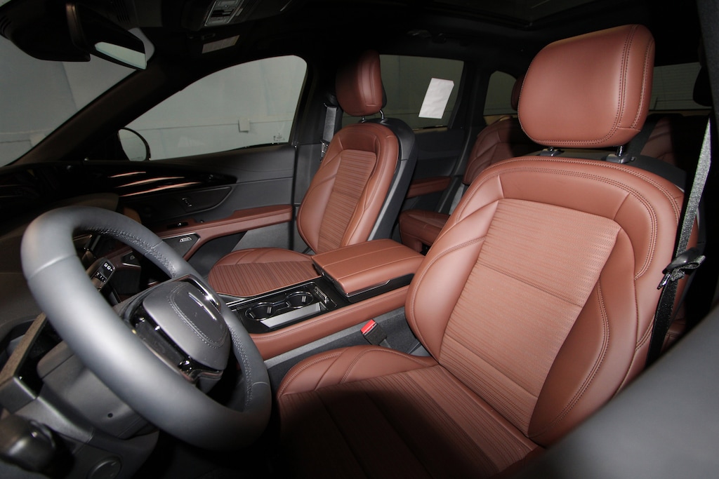 2.0L GTDI FHEV, 10 Speakers, 110V Power Converter, 4-Wheel Disc Brakes, ABS brakes, Adaptive suspension, Air Conditioning, Alloy wheels, AM/FM radio: SiriusXM with 360L, Apple CarPlay/Android Auto, Auto Air Refresh, Auto High-beam Headlights, Auto tilt-away steering wheel, Auto-dimming Rear-View mirror, Automatic temperature control, BlueCruise Equipped (4-Years Included), Brake assist, Bumpers: body-color, Compass, Delay-off headlights, Digital Scent, Driver door bin, Driver vanity mirror, Dual front impact airbags, Dual front side impact airbags, Electronic Stability Control, Emergency communication system: 911 Assist, Equipment Group 202A Reserve II, Exterior Parking Camera Rear, Four wheel independent suspension, Front anti-roll bar, Front Bucket Seats, Front Center Armrest w/Storage, Front dual zone A/C, Front reading lights, Fully automatic headlights, Garage door transmitter, Hands-Free Power Liftgate, Heated door mirrors, Heated front seats, Heated steering wheel, Illuminated entry, Knee airbag, Leather steering wheel, Lincoln Connectivity Package, Lincoln Digital Experience, Low tire pressure warning, Memory seat, Navigation System, Occupant sensing airbag, Outside temperature display, Overhead airbag, Overhead console, Panic alarm, Panoramic Vista Roof with Powershade, Passenger door bin, Passenger vanity mirror, Power door mirrors, Power driver seat, Power Liftgate, Power passenger seat, Power steering, Power windows, Premium Leather Trimmed Captain's Chairs, Radio data system, Radio: AM/FM Revel Audio System, Rain sensing wipers, Rear anti-roll bar, Rear Heated Seats with Switch Control, Rear reading lights, Rear seat center armrest, Rear window defroster, Rear window wiper, Remote keyless entry, Security system, SiriusXM with 360L, Speed control, Speed-sensing steering, Speed-Sensitive Wipers, Split folding rear seat, Spoiler, Steering wheel memory, Steering wheel mounted audio controls, Tachometer, Telescoping steering wheel, Tilt steering wheel, Traction control, Trip computer, Turn signal indicator mirrors, Variably intermittent wipers, Ventilated front seats, 2.0L GTDI FHEV.