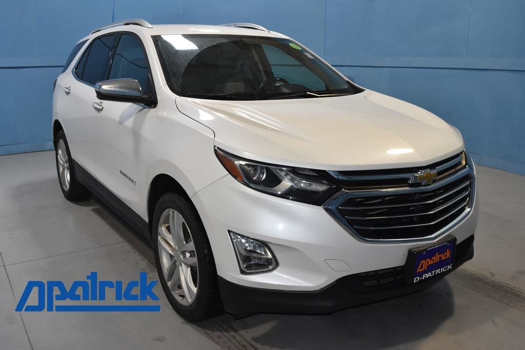 2020 Chevrolet Equinox Premier We want you to shop confidently for your next used car at D-Patrick Nissan. Buy this used vehicle 100% online or in-store. This pre-owned vehicle was put through an extensive inspection before hitting our lot. Because of this, we are able to offer a 3-month/3,000-mile comprehensive limited warranty. You also get our Love It or Return It 5-day, 300-mile Exchange Policy. See our website for more details on both. We also offer extended warranties, additional protection plans, and offer a free to you CarFax vehicle history report. We have a large selection of all makes and models in-stock today at the MEGASTORE. Looking to sell your current vehicle? We want to buy your car! *Prices listed do not include a $250 documentation fee, applicable tax, title, tags, license, or $195 service and preparation. All pricing, vehicle information, and features (such as accessories and color) are believed to be accurate, but we do not warrant or guarantee such accuracy. The prices shown above may vary from region to region, and incentives are subject to change. Some offers listed may not be available to all customers. All online sale commitments are subject to confirmation of continued availability of vehicle. Once availability is confirmed, online sale agreement becomes binding upon the parties. If any information found on the website is thought to be erroneous, please verify information with a customer service representative. See dealer for full details. Looking to sell your current vehicle? We buy cars for cash. AWD, 2 Rear USB Charging-Only Ports, 2 USB Data Ports, 2 USB Data Ports w/SD Card Reader, 2-Way Power Driver Lumbar Control Seat Adjuster, 3.17 Final Drive Axle Ratio, 4-Wheel Antilock 4-Wheel Disc Brakes, 4-Wheel Disc Brakes, 6 Speaker Audio System Feature, 6 Speakers, 8-Way Power Driver Seat Adjuster, ABS brakes, Air Conditioning, Alloy wheels, AM/FM radio: SiriusXM, Apple CarPlay/Android Auto, Auto High-beam Headlights, Auto-dimming door mirrors, Auto-dimming Rear-View mirror, Automatic temperature control, Bluetooth® For Phone, Body-Color Trailer Hitch Close-Out Cover, Brake assist, Bumpers: body-color, Compass, Delay-off headlights, Driver door bin, Driver vanity mirror, Dual front impact airbags, Dual front side impact airbags, Dual Stainless-Steel Exhaust w/Bright Tips, Electronic Stability Control, Emergency communication system: OnStar and Chevrolet connected services capable, Factory Installed Trailer Hitch, Four wheel independent suspension, Front anti-roll bar, Front Bucket Seats, Front Center Armrest, Front dual zone A/C, Front fog lights, Front Passenger 4-Way Manual Seat Adjuster, Front reading lights, Fully automatic headlights, Garage door transmitter, Heated door mirrors, Heated Driver & Front Passenger Seats, Heated front seats, Illuminated entry, Low tire pressure warning, Memory seat, Occupant sensing airbag, Outside temperature display, Overhead airbag, Overhead console, Panic alarm, Passenger door bin, Passenger vanity mirror, Perforated Leather-Appointed Seat Trim, Power door mirrors, Power driver seat, Power Liftgate, Power steering, Power windows, Preferred Equipment Group 2LZ, Premium audio system: Chevrolet Infotainment 3 Plus, Radio data system, Radio: Chevrolet Infotainment 3 Plus System, Rear anti-roll bar, Rear reading lights, Rear seat center armrest, Rear window defroster, Rear window wiper, Remote keyless entry, Roof rack: rails only, Security system, SiriusXM Radio, Speed control, Speed-sensing steering, Split folding rear seat, Spoiler, Steering wheel mounted audio controls, Tachometer, Telescoping steering wheel, Tilt steering wheel, Traction control, Trailering Equipment, Trip computer, Turn signal indicator mirrors, Variably intermittent wipers, Wheels: 19 Bright Machined, AWD. Clean CARFAX. 4D Sport Utility Premier 9-Speed Automatic with Overdrive 2.0L Turbocharged AWD Iridescent Pearl Tricoat CALL TODAY 812-473-6500 and shop online at www.dpatricknissan.com.