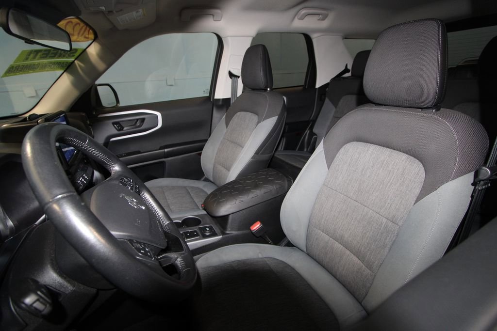 2022 Ford Bronco Sport Big Bend We want you to shop confidently for your next used car at The BIG Ford Store, D-Patrick Ford. We are located on Highway 41 and Walnut in Evansville, right next to the Lloyd Expressway. Buy this used vehicle 100% online or in-store. This pre-owned vehicle was put through an extensive inspection before hitting our lot. Because of this, we are able to offer a 3-month/3,000-mile comprehensive limited warranty. You also get our Love It or Return It 5-day, 300-mile Exchange Policy. See our website for more details on both. We also offer extended service plans, vehicle protection plans, and offer a free to you CarFax vehicle history report. *Prices listed do not include a $250 documentation fee, applicable tax, title, tags, license, or $195 service and preparation. All pricing, vehicle information, and features (such as accessories and color) are believed to be accurate, but we do not warrant or guarantee such accuracy. The prices shown above may vary from region to region, and incentives are subject to change. Some offers listed may not be available to all customers. All online sale commitments are subject to confirmation of continued availability of vehicle. Once availability is confirmed, online sale agreement becomes binding upon the parties. If any information found on the website is thought to be erroneous, please verify information with a customer service representative. See dealer for full details. Looking to sell your current vehicle? We buy cars for cash. Every test drive at D-Patrick Ford in Evansville earns $10 to a local charity. Schedule your test drive today! 3.80 Axle Ratio, 4-Wheel Disc Brakes, 6 Speakers, ABS brakes, Air Conditioning, Alloy wheels, AM/FM radio: SiriusXM, AM/FM Stereo, Auto High-beam Headlights, Automatic temperature control, Brake assist, Class II Trailer Tow Package w/Trailer Sway Control, Compass, Convenience Package, Delay-off headlights, Driver door bin, Driver vanity mirror, Dual front impact airbags, Dual front side impact airbags, Electronic Stability Control, Emergency communication system: SYNC 3 911 Assist, Equipment Group 200A, Evasive Steering Assist, Ford Co-Pilot360 Assist+, Four wheel independent suspension, Front anti-roll bar, Front Bucket Seats, Front Center Armrest, Front Driver & Passenger Seatback Zipper Pockets, Front reading lights, Fully automatic headlights, Heated door mirrors, Heated Front Bucket Seats, Illuminated entry, Intelligent Access (Lock/Unlock), Intelligent Adaptive Cruise Control w/Stop & Go, Knee airbag, Leather-Wrapped Steering Wheel, LED Fog Lamps, Low tire pressure warning, Occupant sensing airbag, Outside temperature display, Overhead airbag, Overhead console, Panic alarm, Passenger door bin, Passenger vanity mirror, Power door mirrors, Power steering, Power windows, Radio data system, Rear anti-roll bar, Rear Parking Sensors, Rear reading lights, Rear seat center armrest, Rear window defroster, Rear window wiper, Remote keyless entry, Roof rack: rails only, Security system, SiriusXM Radio, Speed control, Speed-sensing steering, Speed-Sensitive Wipers, Split folding rear seat, Steering wheel mounted audio controls, SYNC 3 Communications & Entertainment System, SYNC 3/Apple CarPlay/Android Auto, Tachometer, Telescoping steering wheel, Tilt steering wheel, Traction control, Trip computer, Unique Cloth Front Bucket Seats, Universal Garage Door Opener (UGDO), Variably intermittent wipers, Voice-Activated Touchscreen Navigation System, Wheels: 17" Carbonized Gray-Painted Aluminum, Wireless Charging Pad. CARFAX One-Owner. 4D Sport Utility Big Bend 8-Speed Automatic 1.5L EcoBoost 4WD Alto Blue Metallic Tinted Clearcoat CALL TODAY (812) 625-4823 OR SHOP ONLINE AT WWW.DPATRICKFORD.COM.