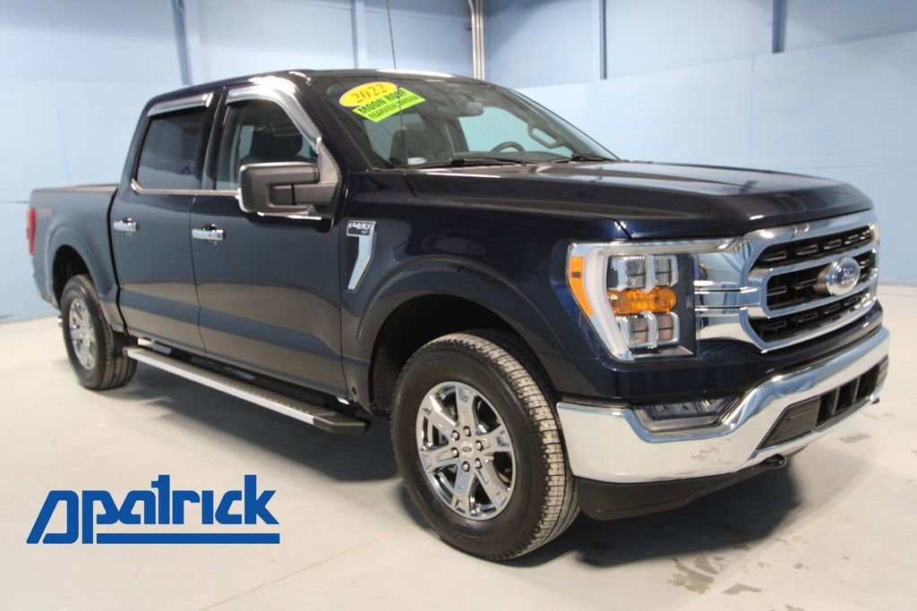 2022 Ford F-150 XLT We want you to shop confidently for your next used car at The BIG Ford Store, D-Patrick Ford. We are located on Highway 41 and Walnut in Evansville, right next to the Lloyd Expressway. Buy this used vehicle 100% online or in-store. This pre-owned vehicle was put through an extensive inspection before hitting our lot. Because of this, we are able to offer a 3-month/3,000-mile comprehensive limited warranty. You also get our Love It or Return It 5-day, 300-mile Exchange Policy. See our website for more details on both. We also offer extended service plans, vehicle protection plans, and offer a free to you CarFax vehicle history report. *Prices listed do not include a $250 documentation fee, applicable tax, title, tags, license, or $195 service and preparation. All pricing, vehicle information, and features (such as accessories and color) are believed to be accurate, but we do not warrant or guarantee such accuracy. The prices shown above may vary from region to region, and incentives are subject to change. Some offers listed may not be available to all customers. All online sale commitments are subject to confirmation of continued availability of vehicle. Once availability is confirmed, online sale agreement becomes binding upon the parties. If any information found on the website is thought to be erroneous, please verify information with a customer service representative. See dealer for full details. Looking to sell your current vehicle? We buy cars for cash. Every test drive at D-Patrick Ford in Evansville earns $10 to a local charity. Schedule your test drive today! 4WD, 3.55 Axle Ratio, 3.73 Axle Ratio, 4-Wheel Disc Brakes, 6 Speakers, ABS brakes, Air Conditioning, Alloy wheels, AM/FM radio, Auto High-beam Headlights, Auto Start-Stop Removal, Bed Utility Package, BoxLink, Brake assist, Bright Polished Step Bars, Bumpers: chrome, Chrome Single-Tip Exhaust, Class IV Trailer Hitch Receiver, Cloth 40/20/40 Front Seat, Compass, Connected Navigation & SiriusXM w/360L Removal, Delay-off headlights, Driver door bin, Driver vanity mirror, Dual front impact airbags, Dual front side impact airbags, Dual Zone Electronic Automatic Temperature Control, Electronic Stability Control, Emergency communication system: SYNC 4 911 Assist, Equipment Group 302A High, Exterior Parking Camera Rear, Front anti-roll bar, Front Center Armrest w/Storage, Front fog lights, Front reading lights, Front wheel independent suspension, Fully automatic headlights, GVWR: 6,470 lbs Payload Package, Heated door mirrors, Illuminated entry, Intelligent Access w/Push Button Start, LED Reflector Headlamps, LED Sideview Mirror Spotlights, Low tire pressure warning, Occupant sensing airbag, Onboard 400W Outlet, Outside temperature display, Overhead airbag, Overhead console, Panic alarm, Passenger door bin, Passenger vanity mirror, Power door mirrors, Power steering, Power windows, Power-Adjustable Pedals, Power-Sliding Rear Window, Radio data system, Radio: AM/FM Stereo w/6 Speakers, Rear reading lights, Rear step bumper, Rear window defroster, Remote keyless entry, Remote Start System, SecuriCode Drivers Side Keyless-Entry Keypad, Security system, Speed control, Speed-sensing steering, Split folding rear seat, Steering wheel mounted audio controls, SYNC 4, SYNC 4 w/Enhanced Voice Recognition, Tachometer, Telescoping steering wheel, Tilt steering wheel, Tough Bed Spray-In Bedliner, Traction control, Trip computer, Twin Panel Moonroof, Variably intermittent wipers, Voltmeter, Wheels: 17" Silver Painted Aluminum, XLT Chrome Appearance Package, 4WD. CARFAX One-Owner. Clean CARFAX. 4D SuperCrew XLT 10-Speed Automatic 2.7L V6 EcoBoost 4WD Blue Metallic CALL TODAY (812) 625-4823 OR SHOP ONLINE AT WWW.DPATRICKFORD.COM.