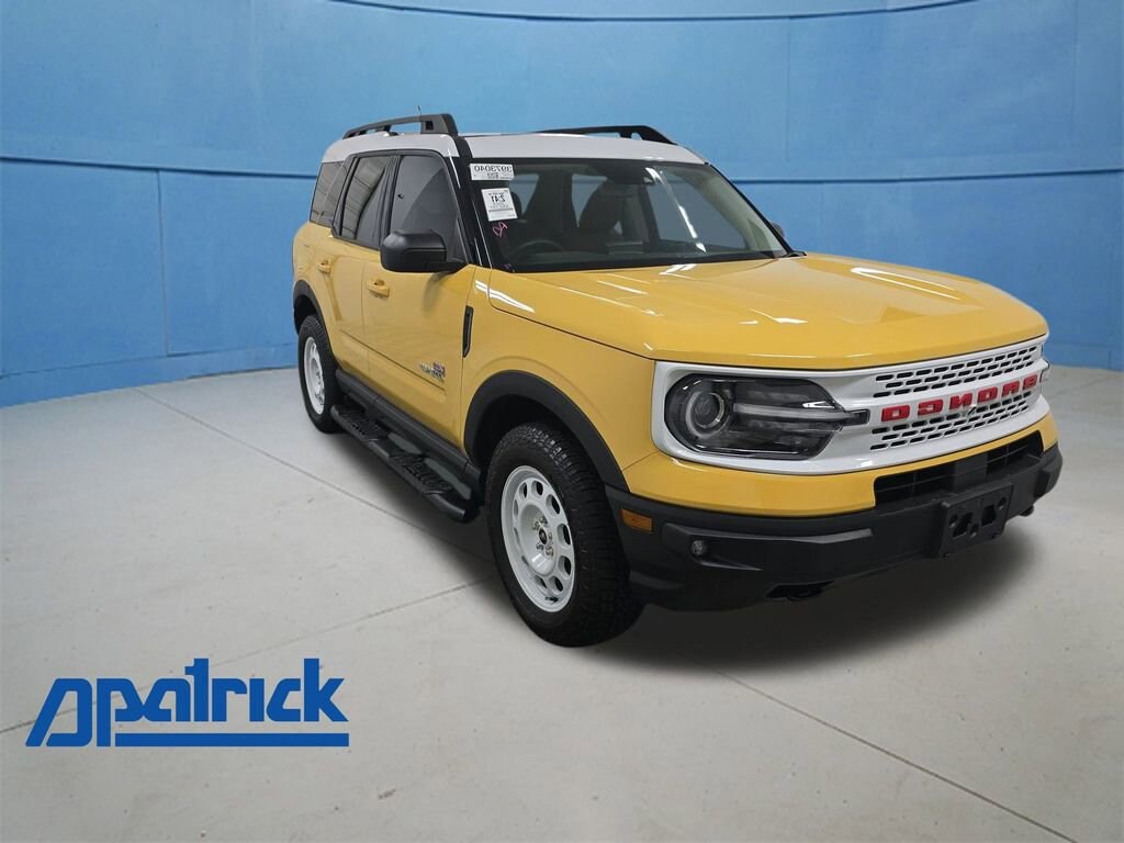 2023 Ford Bronco Sport Heritage Limited Recent Arrival! We want you to shop confidently for your next used car at The BIG Ford Store, D-Patrick Ford. We are located on Highway 41 and Walnut in Evansville, right next to the Lloyd Expressway. Buy this used vehicle 100% online or in-store. This pre-owned vehicle was put through an extensive inspection before hitting our lot. Because of this, we are able to offer a 3-month/3,000-mile comprehensive limited warranty. You also get our Love It or Return It 5-day, 300-mile Exchange Policy. See our website for more details on both. We also offer extended service plans, vehicle protection plans, and offer a free to you CarFax vehicle history report. *Prices listed do not include a $250 documentation fee, applicable tax, title, tags, license, or $195 service and preparation. All pricing, vehicle information, and features (such as accessories and color) are believed to be accurate, but we do not warrant or guarantee such accuracy. The prices shown above may vary from region to region, and incentives are subject to change. Some offers listed may not be available to all customers. All online sale commitments are subject to confirmation of continued availability of vehicle. Once availability is confirmed, online sale agreement becomes binding upon the parties. If any information found on the website is thought to be erroneous, please verify information with a customer service representative. See dealer for full details. Looking to sell your current vehicle? We buy cars for cash. Every test drive at D-Patrick Ford in Evansville earns $10 to a local charity. Schedule your test drive today! 10 Speakers, 3.80 Axle Ratio, 4-Wheel Disc Brakes, ABS brakes, Air Conditioning, Alloy wheels, AM/FM radio: SiriusXM, AM/FM Stereo, Auto High-beam Headlights, Auto-dimming Rear-View mirror, Automatic temperature control, Brake assist, Cargo Management System, Cargo Mat, Compass, Delay-off headlights, Driver door bin, Driver vanity mirror, Dual front impact airbags, Dual front side impact airbags, Electronic Stability Control, Emergency communication system: SYNC 3 911 Assist, Equipment Group 410A, Four wheel independent suspension, Front & Rear Floor Liners, Front anti-roll bar, Front Bucket Seats, Front Center Armrest, Front dual zone A/C, Front fog lights, Front reading lights, Fully automatic headlights, Garage door transmitter, Heated door mirrors, Heated front seats, Heated steering wheel, Illuminated entry, Knee airbag, Low tire pressure warning, Lthr-Trimmed/Vinyl Htd Sport Contour Bucket Seats, Memory seat, Navigation System, Occupant sensing airbag, Outside temperature display, Overhead airbag, Overhead console, Panic alarm, Passenger door bin, Passenger vanity mirror, Power door mirrors, Power driver seat, Power moonroof, Power passenger seat, Power steering, Power windows, Radio data system, Rear anti-roll bar, Rear Parking Sensors, Rear reading lights, Rear seat center armrest, Rear window defroster, Rear window wiper, Remote keyless entry, Security system, SiriusXM, Speed control, Speed-sensing steering, Speed-Sensitive Wipers, Split folding rear seat, Steering wheel mounted audio controls, SYNC 3 Communications & Entertainment System, SYNC 3/Apple CarPlay/Android Auto, Tachometer, Telescoping steering wheel, Tilt steering wheel, Traction control, Trip computer, Variably intermittent wipers, Wheels: 17" Oxford White-Painted Aluminum. CARFAX One-Owner. Clean CARFAX. 4D Sport Utility Heritage Limited 8-Speed Automatic EcoBoost 2.0L I4 GTDi DOHC Turbocharged VCT 4WD Yellowstone CALL TODAY (812) 625-4823 OR SHOP ONLINE AT WWW.DPATRICKFORD.COM.