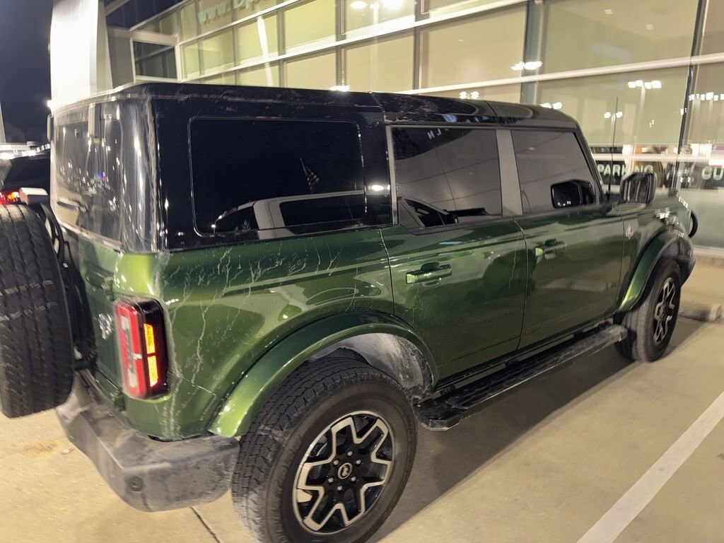 2024 Ford Bronco Outer Banks Recent Arrival! We want you to shop confidently for your next used car at The BIG Ford Store, D-Patrick Ford. We are located on Highway 41 and Walnut in Evansville, right next to the Lloyd Expressway. Buy this used vehicle 100% online or in-store. This pre-owned vehicle was put through an extensive inspection before hitting our lot. Because of this, we are able to offer a 3-month/3,000-mile comprehensive limited warranty. You also get our Love It or Return It 5-day, 300-mile Exchange Policy. See our website for more details on both. We also offer extended service plans, vehicle protection plans, and offer a free to you CarFax vehicle history report. *Prices listed do not include a $250 documentation fee, applicable tax, title, tags, license, or $195 service and preparation. All pricing, vehicle information, and features (such as accessories and color) are believed to be accurate, but we do not warrant or guarantee such accuracy. The prices shown above may vary from region to region, and incentives are subject to change. Some offers listed may not be available to all customers. All online sale commitments are subject to confirmation of continued availability of vehicle. Once availability is confirmed, online sale agreement becomes binding upon the parties. If any information found on the website is thought to be erroneous, please verify information with a customer service representative. See dealer for full details. Looking to sell your current vehicle? We buy cars for cash. Every test drive at D-Patrick Ford in Evansville earns $10 to a local charity. Schedule your test drive today! 18" Bright Machined Aluminum Wheels, 4-Wheel Disc Brakes, 7 Speakers, ABS brakes, Air Conditioning, Alloy wheels, AM/FM radio: SiriusXM with 360L, AM/FM Stereo, Auto High-beam Headlights, Auto-dimming Rear-View mirror, Automatic temperature control, Brake assist, Compass, Connected Navigation, Delay-off headlights, Driver door bin, Driver vanity mirror, Dual front impact airbags, Dual front side impact airbags, Electronic Stability Control, Emergency communication system: 911 Assist, Equipment Group 312A Mid Package, Exterior Parking Camera Rear, Front & Rear Floor Liners w/o Carpet Floor Mats, Front anti-roll bar, Front Bucket Seats, Front Center Armrest, Front dual zone A/C, Front fog lights, Front License Plate Bracket, Front reading lights, Front wheel independent suspension, Fully automatic headlights, Hard Top Sound Deadening Headliner, Heated door mirrors, Heated front seats, Heated Leather-Trimmed/Vinyl Bucket Seats, Illuminated entry, Integrated roll-over protection, Leather Shift Knob, Low tire pressure warning, Navigation system: Connected Navigation, Occupant sensing airbag, Outside temperature display, Overhead airbag, Overhead console, Panic alarm, Passenger door bin, Passenger vanity mirror, Power door mirrors, Power driver seat, Power passenger seat, Power steering, Power windows, Radio data system, Rear seat center armrest, Remote keyless entry, Security system, Shadow Black Painted Hard Top, SiriusXM Radio w/360L, Speed control, Split folding rear seat, Steering wheel mounted audio controls, SYNC 4, Tachometer, Telescoping steering wheel, Tilt steering wheel, Traction control, Trip computer, Variably intermittent wipers, Voltmeter. Clean CARFAX. 4D Sport Utility Outer Banks 10-Speed Automatic 2.3L EcoBoost I-4 4WD Green Metallic CALL TODAY (812) 625-4823 OR SHOP ONLINE AT WWW.DPATRICKFORD.COM.