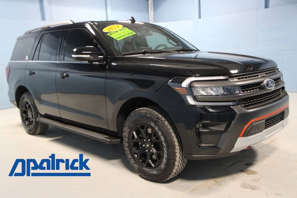 2024 Ford Expedition Timberline We want you to shop confidently for your next used car at The BIG Ford Store, D-Patrick Ford. We are located on Highway 41 and Walnut in Evansville, right next to the Lloyd Expressway. Buy this used vehicle 100% online or in-store. This pre-owned vehicle was put through an extensive inspection before hitting our lot. Because of this, we are able to offer a 3-month/3,000-mile comprehensive limited warranty. You also get our Love It or Return It 5-day, 300-mile Exchange Policy. See our website for more details on both. We also offer extended service plans, vehicle protection plans, and offer a CarFax vehicle history report. *Prices listed do not include a $250 documentation fee, applicable tax, title, tags, license, or $195 service and preparation. All pricing, vehicle information, and features (such as accessories and color) are believed to be accurate, but we do not warrant or guarantee such accuracy. The prices shown above may vary from region to region, and incentives are subject to change. Some offers listed may not be available to all customers. All online sale commitments are subject to confirmation of continued availability of vehicle. Once availability is confirmed, online sale agreement becomes binding upon the parties. If any information found on the website is thought to be erroneous, please verify information with a customer service representative. See dealer for full details. Looking to sell your current vehicle? We buy cars for cash. Every test drive at D-Patrick Ford in Evansville earns $10 to a local charity. Schedule your test drive today! 4WD, 15.5" LCD Capacitive Touchscreen, 2nd Row Leather Trimmed Pwr-Folding Captain's Chairs, 2nd Row Power Windows, 360-Degree Camera w/Split View, 3rd row seats: split-bench, 4-Wheel Disc Brakes, 6 Speakers, ABS brakes, Adjustable pedals, Air Conditioning, Alloy wheels, AM/FM radio: SiriusXM with 360L, Ambient Lighting, Auto High-beam Headlights, Auto-dimming door mirrors, Auto-dimming Rear-View mirror, Automatic temperature control, Brake assist, Bumpers: body-color, Compass, Connected Navigation, ControlTrac w/3.73 Axle Ratio, Delay-off headlights, Driver door bin, Driver vanity mirror, Dual front impact airbags, Dual front side impact airbags, Electronic Stability Control, Emergency communication system: SYNC 4 911 Assist, Equipment Group 501A High Package, Exterior Parking Camera Rear, Four wheel independent suspension, Front anti-roll bar, Front Bucket Seats, Front Center Armrest, Front dual zone A/C, Front fog lights, Front reading lights, Fully automatic headlights, Garage door transmitter, Heated & Vent Cloth/Vinyl Front Captain's Chairs, Heated & Ventilated Leather Front Captain's Chairs, Heated door mirrors, Heated front seats, Heated Steering Wheel, Heated steering wheel, Heavy-Duty Trailer Tow Package, Illuminated entry, Instrument Panel Cluster, Integrated Trailer Brake Controller, Leather steering wheel, Low tire pressure warning, Memory seat, Navigation system: Connected Navigation, Occupant sensing airbag, Outside temperature display, Overhead airbag, Overhead console, Panic alarm, Panoramic Vista Roof, Passenger door bin, Passenger vanity mirror, Pedal memory, Power door mirrors, Power driver seat, Power Liftgate, Power passenger seat, Power steering, Power windows, Power-Folding Sideview Mirrors w/Autofold, Pro Trailer Backup Assist, Radio data system, Radio: AM/FM Stereo w/MP3 Capable, Radio: B&O Sound System by Bang & Olufsen, Rain-Sensing Wipers (Front Only), Rear air conditioning, Rear anti-roll bar, Rear reading lights, Rear window defroster, Rear window wiper, Reclining 3rd row seat, Remote keyless entry, Reverse Brake Assist, Security system, SiriusXM w/360L, Speed control, Speed-sensing steering, Speed-Sensitive Wipers, Split folding rear seat, Spoiler, Steering wheel memory, Steering wheel mounted audio controls, SYNC 4 w/Enhanced Voice Recognition, Tachometer, Telescoping steering wheel, Tilt steering wheel, Tractio