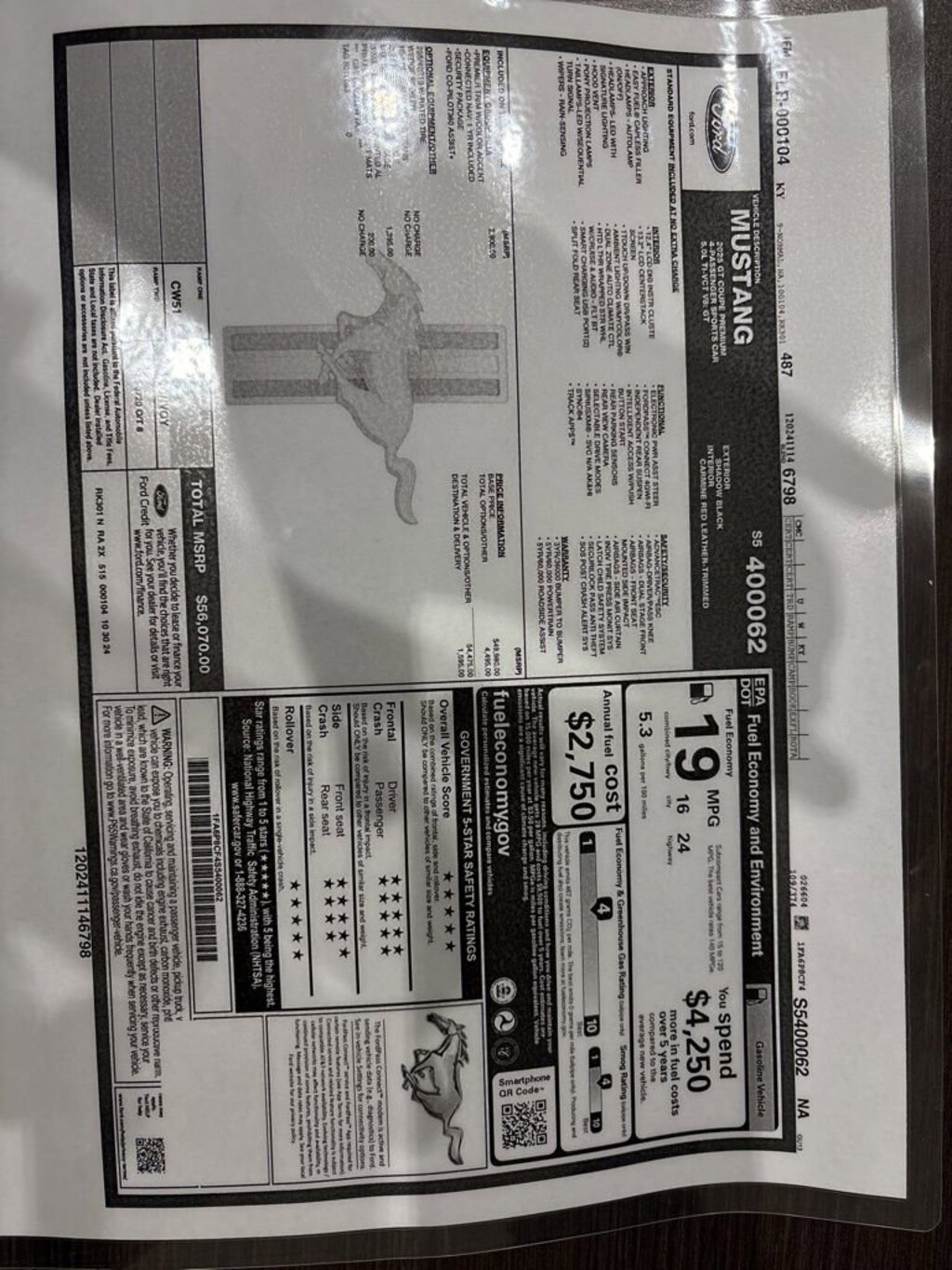 2025 Ford Mustang GT Premium Recent Arrival! We want you to shop confidently for your next used car at The BIG Ford Store, D-Patrick Ford. We are located on Highway 41 and Walnut in Evansville, right next to the Lloyd Expressway. Buy this used vehicle 100% online or in-store. This pre-owned vehicle was put through an extensive inspection before hitting our lot. Because of this, we are able to offer a 3-month/3,000-mile comprehensive limited warranty. You also get our Love It or Return It 5-day, 300-mile Exchange Policy. See our website for more details on both. We also offer extended service plans, vehicle protection plans, and offer a free to you CarFax vehicle history report. *Prices listed do not include a $250 documentation fee, applicable tax, title, tags, license, or $195 service and preparation. All pricing, vehicle information, and features (such as accessories and color) are believed to be accurate, but we do not warrant or guarantee such accuracy. The prices shown above may vary from region to region, and incentives are subject to change. Some offers listed may not be available to all customers. All online sale commitments are subject to confirmation of continued availability of vehicle. Once availability is confirmed, online sale agreement becomes binding upon the parties. If any information found on the website is thought to be erroneous, please verify information with a customer service representative. See dealer for full details. Looking to sell your current vehicle? We buy cars for cash. Every test drive at D-Patrick Ford in Evansville earns $10 to a local charity. Schedule your test drive today! 4-Wheel Disc Brakes, 9 Speakers, ABS brakes, Air Conditioning, Alloy wheels, AM/FM radio: SiriusXM with 360L, AM/FM Stereo, Auto High-beam Headlights, Auto-dimming Rear-View mirror, Automatic temperature control, Black GT Pony Badges, Black Mirror Caps, Brake assist, Bumpers: body-color, Climate Controlled Heated/Cooled Front Seats, Compass, Delay-off headlights, Driver door bin, Driver vanity mirror, Dual front impact airbags, Dual front side impact airbags, Electronic Stability Control, Emergency communication system: 911 Assist, Equipment Group 401A High Package, Exterior Parking Camera Rear, Four wheel independent suspension, Front anti-roll bar, Front Bucket Seats, Front Center Armrest, Front dual zone A/C, Front reading lights, Fully automatic headlights, Garage door transmitter, HD Radio, Headlamps w/Black Bezels, Heated door mirrors, Heated front seats, Heated steering wheel, Illuminated Door-Sill Scuff Plates, Illuminated entry, Internet access capable: FordPass Connect, Knee airbag, Leather Shift Knob, Leather steering wheel, Leather-Trimmed Bucket Seats, Locking Center Console, Low tire pressure warning, Mustang Nite Pony Package, Mustang Nite Pony Package w/Shadow Black Paint, Occupant sensing airbag, Outside temperature display, Overhead airbag, Overhead console, Painted Black Roof, Panic alarm, Passenger door bin, Passenger vanity mirror, Power door mirrors, Power driver seat, Power passenger seat, Power steering, Power windows, Premium Floor Liners Front & Rear (w/Carpet Mats), Radio data system, Rain sensing wipers, Rear anti-roll bar, Rear Parking Sensors, Rear window defroster, Remote keyless entry, Security Package, SiriusXM w/360L, Speed control, Speed-sensing steering, Speed-Sensitive Wipers, Split folding rear seat, Spoiler, Sport steering wheel, Steering wheel mounted audio controls, SYNC 4, Tachometer, Telescoping steering wheel, Tilt steering wheel, Traction control, Trip computer, Turn signal indicator mirrors, Variably intermittent wipers, Ventilated front seats, Voltmeter, Wheels: 19" x 8.5" Shadow Silver-Painted Aluminum. CARFAX One-Owner. 2D Coupe GT Premium 10-Speed Automatic 5.0L V8 Ti-VCT RWD Shadow Black CALL TODAY (812) 625-4823 OR SHOP ONLINE AT WWW.DPATRICKFORD.COM.