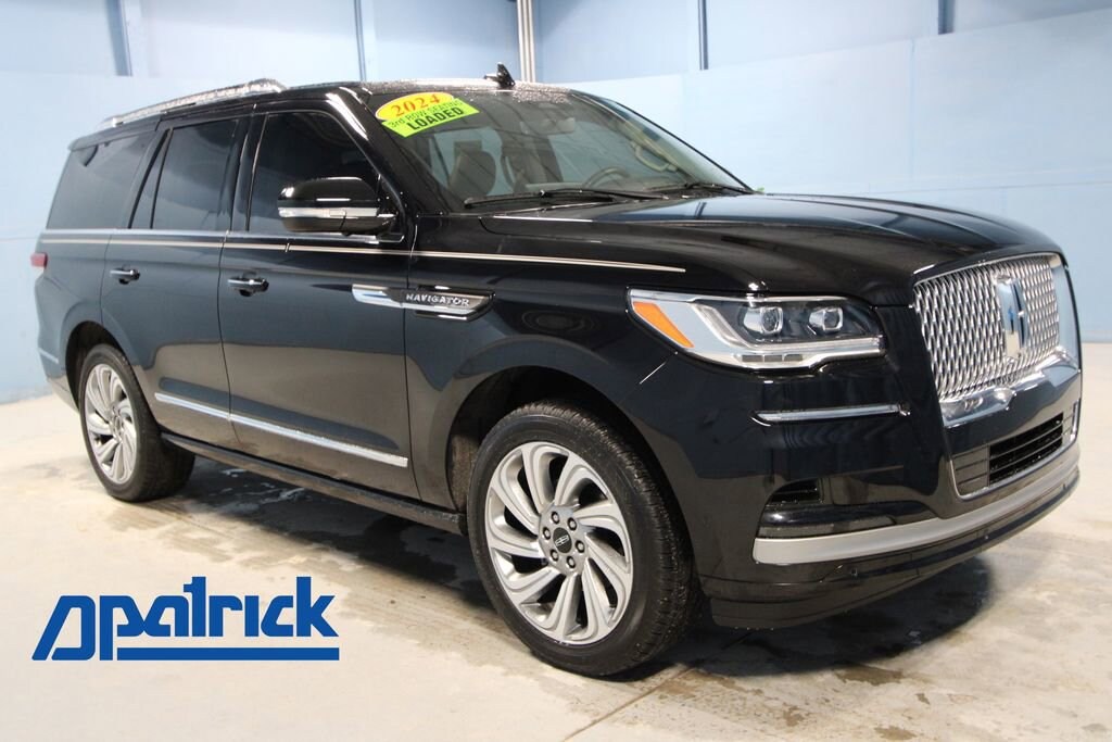 2024 Lincoln Navigator Premiere Recent Arrival! We want you to shop confidently for your next used car at The BIG Ford Store, D-Patrick Ford. We are located on Highway 41 and Walnut in Evansville, right next to the Lloyd Expressway. Buy this used vehicle 100% online or in-store. This pre-owned vehicle was put through an extensive inspection before hitting our lot. Because of this, we are able to offer a 3-month/3,000-mile comprehensive limited warranty. You also get our Love It or Return It 5-day, 300-mile Exchange Policy. See our website for more details on both. We also offer extended service plans, vehicle protection plans, and offer a CarFax vehicle history report. *Prices listed do not include a $250 documentation fee, applicable tax, title, tags, license, or $195 service and preparation. All pricing, vehicle information, and features (such as accessories and color) are believed to be accurate, but we do not warrant or guarantee such accuracy. The prices shown above may vary from region to region, and incentives are subject to change. Some offers listed may not be available to all customers. All online sale commitments are subject to confirmation of continued availability of vehicle. Once availability is confirmed, online sale agreement becomes binding upon the parties. If any information found on the website is thought to be erroneous, please verify information with a customer service representative. See dealer for full details. Looking to sell your current vehicle? We buy cars for cash. Every test drive at D-Patrick Ford in Evansville earns $10 to a local charity. Schedule your test drive today! 4WD, Sandstone, 14 Speakers, 3.73 Axle Ratio, 3rd row seats: split-bench, 4-Wheel Disc Brakes, ABS brakes, Adaptive suspension, Adjustable pedals, Air Conditioning, Alloy wheels, AM/FM radio: SiriusXM with 360L, Apple CarPlay/Android Auto, Audio memory, Auto High-beam Headlights, Auto Start-Stop Technology, Auto tilt-away steering wheel, Auto-dimming door mirrors, Auto-dimming Rear-View mirror, Auto-leveling suspension, Automatic temperature control, Bodyside moldings, Brake assist, Bumpers: body-color, Compass, Delay-off headlights, Driver door bin, Driver vanity mirror, Driver's Seat Mounted Armrest, Dual front impact airbags, Dual front side impact airbags, Electronic Stability Control, Emergency communication system: 911 Assist, Equipment Group 100A Standard, Exterior Parking Camera Rear, Four wheel independent suspension, Front anti-roll bar, Front Bucket Seats, Front dual zone A/C, Front fog lights, Front reading lights, Fully automatic headlights, Garage door transmitter, Genuine wood dashboard insert, Genuine wood door panel insert, Heated door mirrors, Heated front seats, Heated rear seats, Heated steering wheel, HVAC memory, Illuminated entry, Lane Departure Warning System, Leather steering wheel, Lincoln Soft Touch Auto Htd/Ventiltd Comfort Seats, Low tire pressure warning, Memory seat, Navigation system: Connected Navigation (1-year trial), Navigator Plus Exterior Package, Occupant sensing airbag, Outside temperature display, Overhead airbag, Overhead console, Panic alarm, Panoramic Vista Roof w/Power Sunshade, Passenger door bin, Passenger seat mounted armrest, Passenger vanity mirror, Pedal memory, Power adjustable rear head restraints, Power Deployable Illuminated Running Boards, Power door mirrors, Power driver seat, Power Liftgate, Power passenger seat, Power steering, Power windows, Radio data system, Radio: Revel Audio System w/Satelllite/AM/FM/HD, Rain sensing wipers, Rear air conditioning, Rear anti-roll bar, Rear reading lights, Rear window defroster, Rear window wiper, Reclining 3rd row seat, Remote keyless entry, Security system, SiriusXM w/360L, Speed control, Speed-sensing steering, Speed-Sensitive Wipers, Split folding rear seat, Spoiler, Steering wheel memory, Steering wheel mounted audio controls, SYNC 4 Communications & Entertainment System, Tachometer, Telescoping steering wheel, Tilt steering whee
